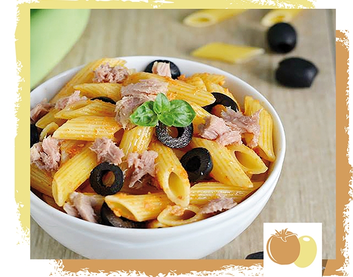 PASTA WITH RED PESTO, TUNA AND OLIVES