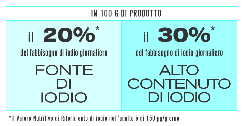 I nostri prodotti assumono così importanti valori di iodio, in linea con un’alimentazione sana e moderna, per consumatori attenti al gusto ed alla salute.